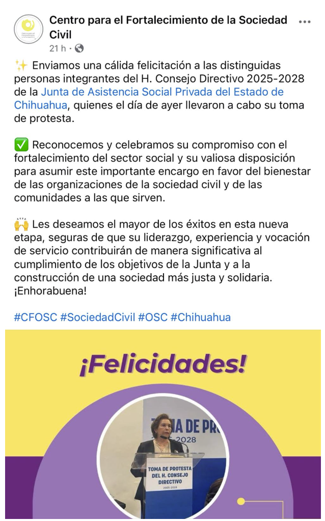 La Junta de Asistencia Social Privada agradece a todos los asistentes y aliadas que nos han felicitado por la toma de protesta del H. Consejo Directivo de la JASP 2025-2028