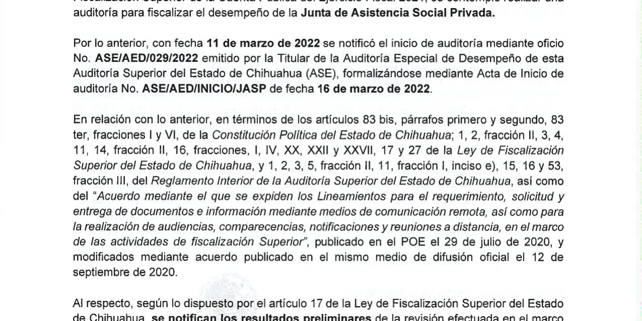 AuditoriasResultados Preliminares Junta de Asistencia Social Privada Categoría: AuditoriasDeja un comentarioNavegación entre publicacionesAnteriorPublicación anterior:Primer boletín del añoSiguientePublicación siguiente:ORGANIZACIONES BENEFICIADAS 2022Ver MásClasificacion_por_Objeto_del_Gasto_Capitulo_y_Conceptomarzo 22, 2023Contrato SICPREGmarzo 21, 2023Contrato Plataformamarzo 21, 2023Contrato Pagina Webmarzo 21, 2023ORGANIZACIONES BENEFICIADAS 2021enero 5, 2023ORGANIZACIONES BENEFICIADAS 2022enero 5, 2023