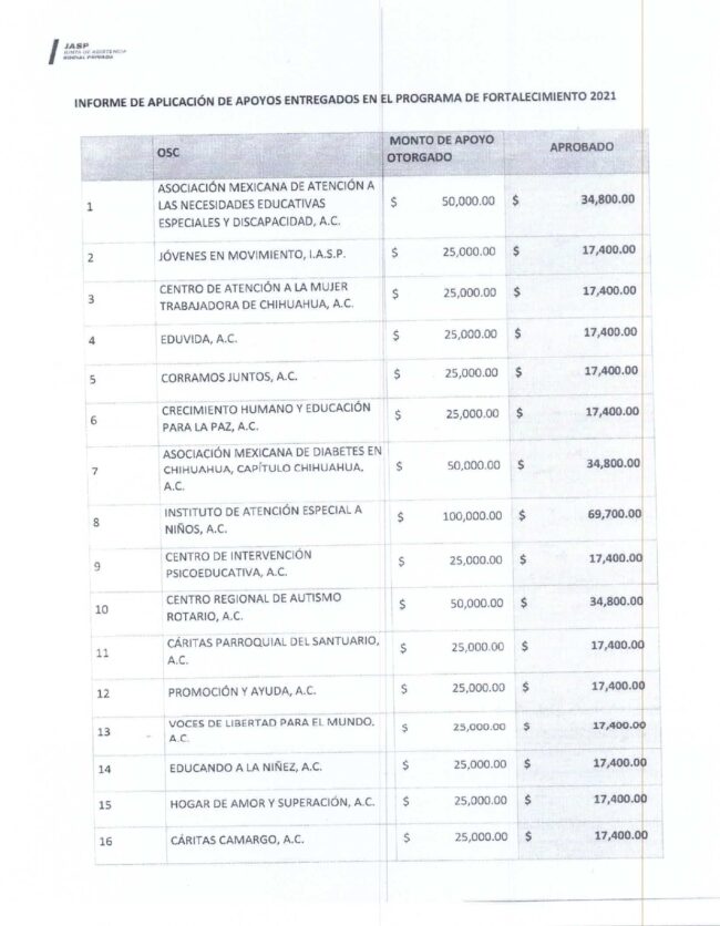 Asociaciones beneficiadas APE- JASP-2021