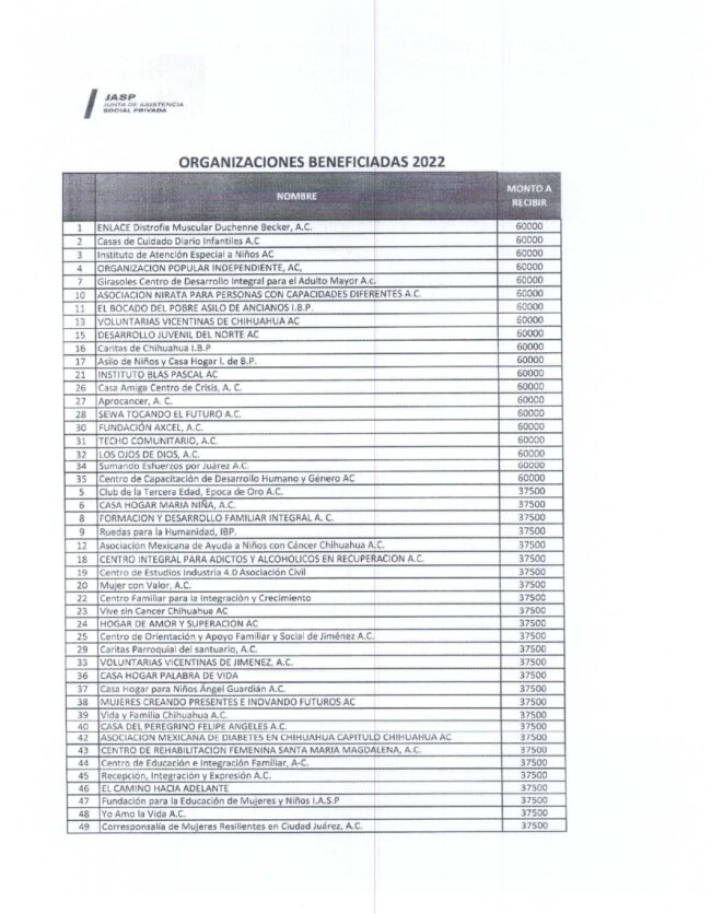 Asociaciones beneficiadas APE -JASP 2022