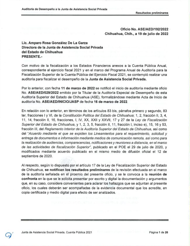 Resultados Preliminares Junta de Asistencia Social Privada
