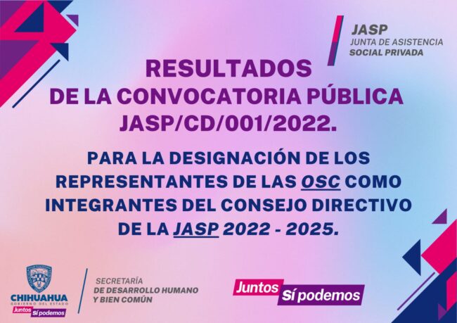 Gobierno del Estado, Secretaría de Desarrollo Humano y Bien Común a través de la Junta de Asistencia Social Privada del Estado de Chihuahua (JASP) CONVOCAN A las Organizaciones de la Sociedad Civil (OSC) a presentar una solicitud para recibir apoyo económico para gasto operativo, de acuerdo con las Reglas de Operación* del Programa “FORTALECIMIENTO A…
