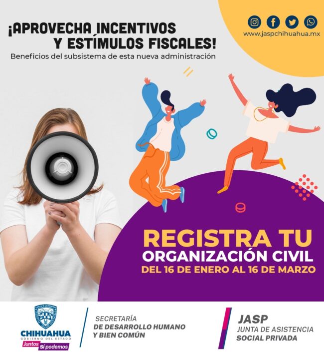 La Junta de Asistencia Social Privada del Estado de Chihuahua invita a las Organizaciones de la Sociedad Civil con constancia 2025 a participar en la convocatoria pública «APOYOS A LAS ORGANIZACIONES DE LA SOCIEDAD CIVIL» para el ejercicio fiscal 2025.